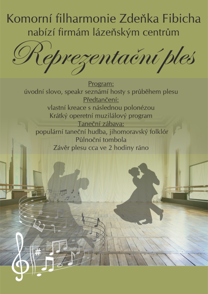 Komorní filharmonie Zdeňka Fibicha nabízí firmám a lázeňským centrům možnost uspořádat exkluzivní reprezentativní ples, který kombinuje elegantní atmosféru, živou hudbu a propracovaný program. Ples je vhodný jako součást firemních večerů, lázeňských pobytů, společenských událostí i slavnostních setkání s hosty.